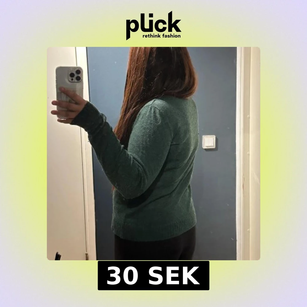 Mysig mörkgrön stickad tröja med v-ringad hals och långa ärmar. Tröjan har en klassisk passform och ribbade muddar vid ärmslut och nederkant. Perfekt för lager-på-lager och chill dagar.