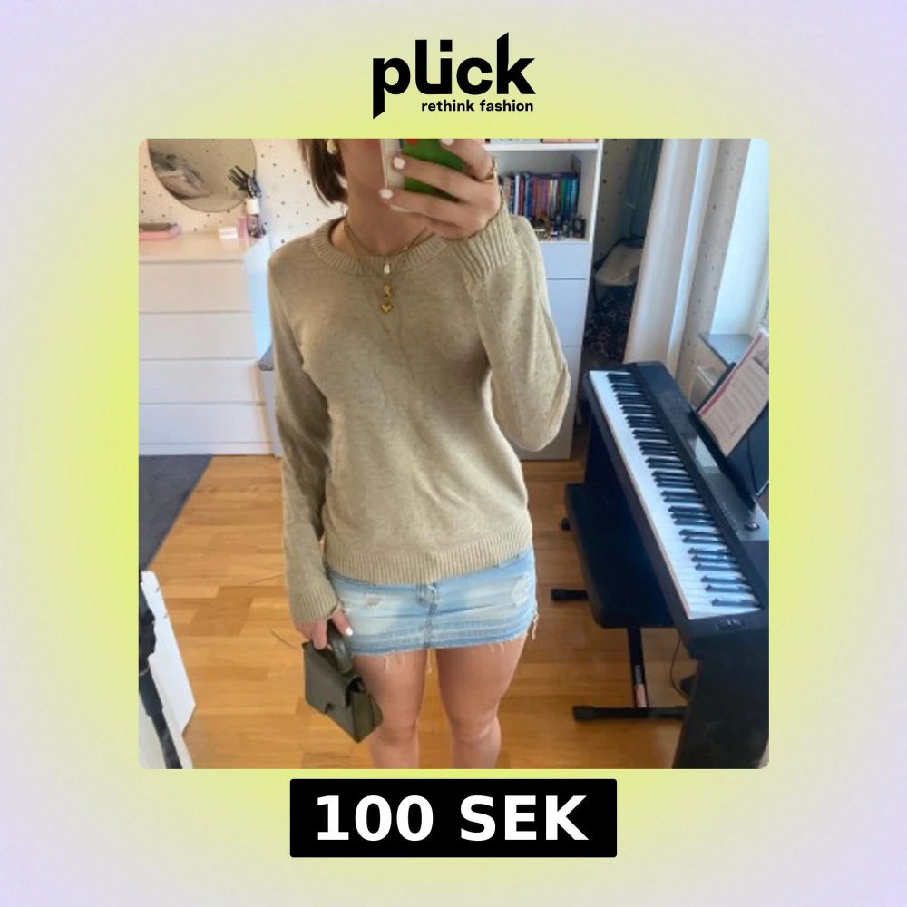 Supermjuk beige stickad tröja med rund halsringning och ribbade muddar vid ärmslut och nederkant. Perfekt för lager-på-lager och enkel att matcha med både jeans och kjol. Långärmad och i klassisk, tidlös model