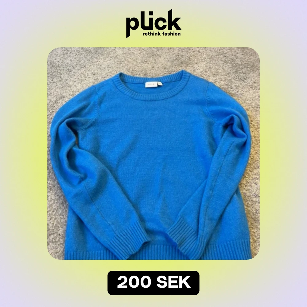 Blå stickad tröja från Vila - Säljer en snygg blå stickad tröja från Vila. Tröjan har en klassisk design med långa ärmar och ribbade kanter vid ärmslut och nederkant. Perfekt för kyligare dagar. Passar bra till både jeans och kjol. Bakdelen är några centimeter längre💙