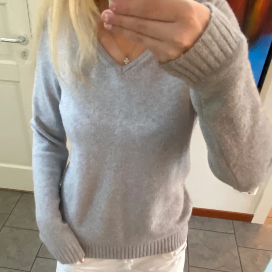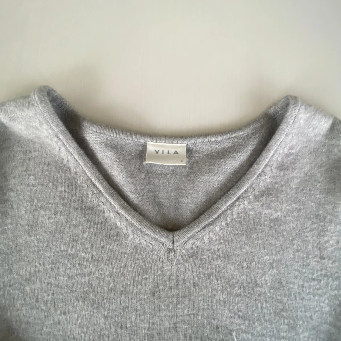 Jättefin grå v-ringad stickad tröja från Vila. Använd men säljer för den har blivit för liten. Originalpris 330kr🩶