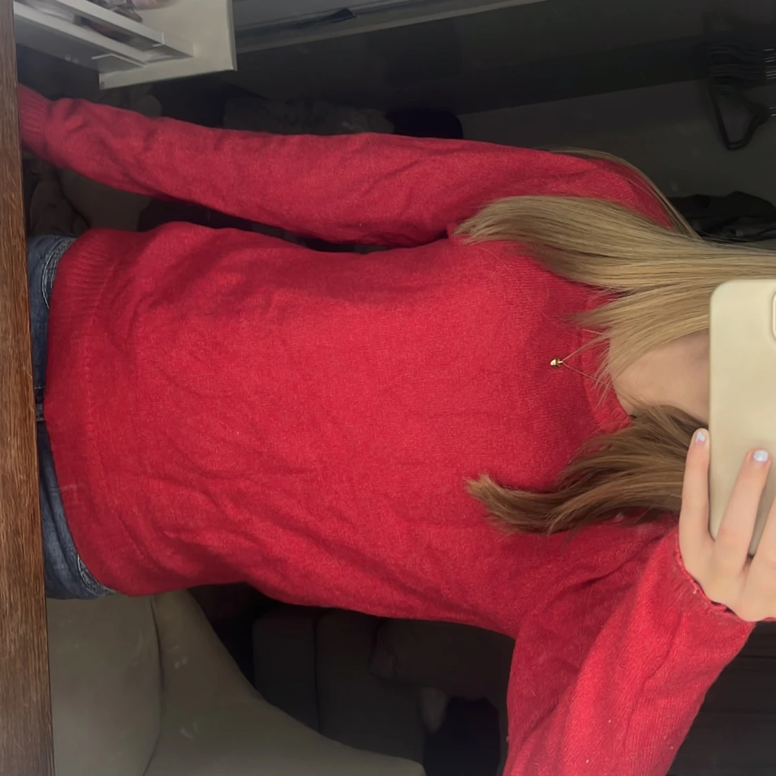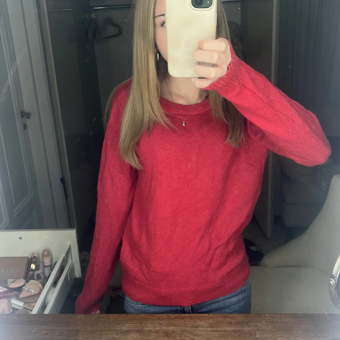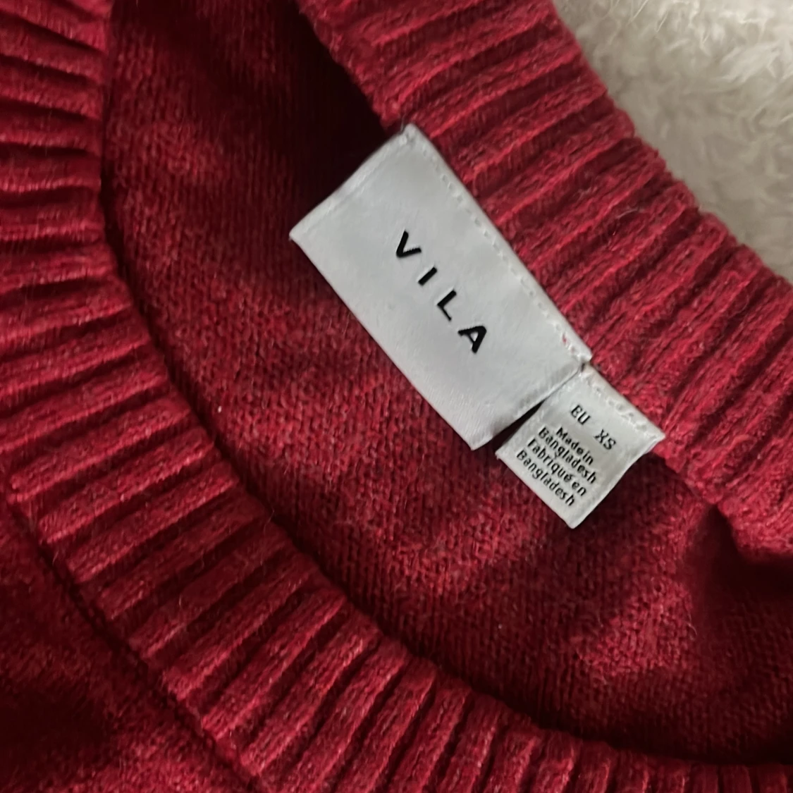 Snygg röd stickad tröja från VILA i storlek XS. Tröjan har rund halsringning, ribbade muddar och lång ärm. Sitter väldigt fint och perfekt för dig som gillar rött!❤️ Den är använd lite då och då❣️ Inga hål eller så men man kan se att den är lite använd då det är lite knott och så, men ing ett man tänker på!