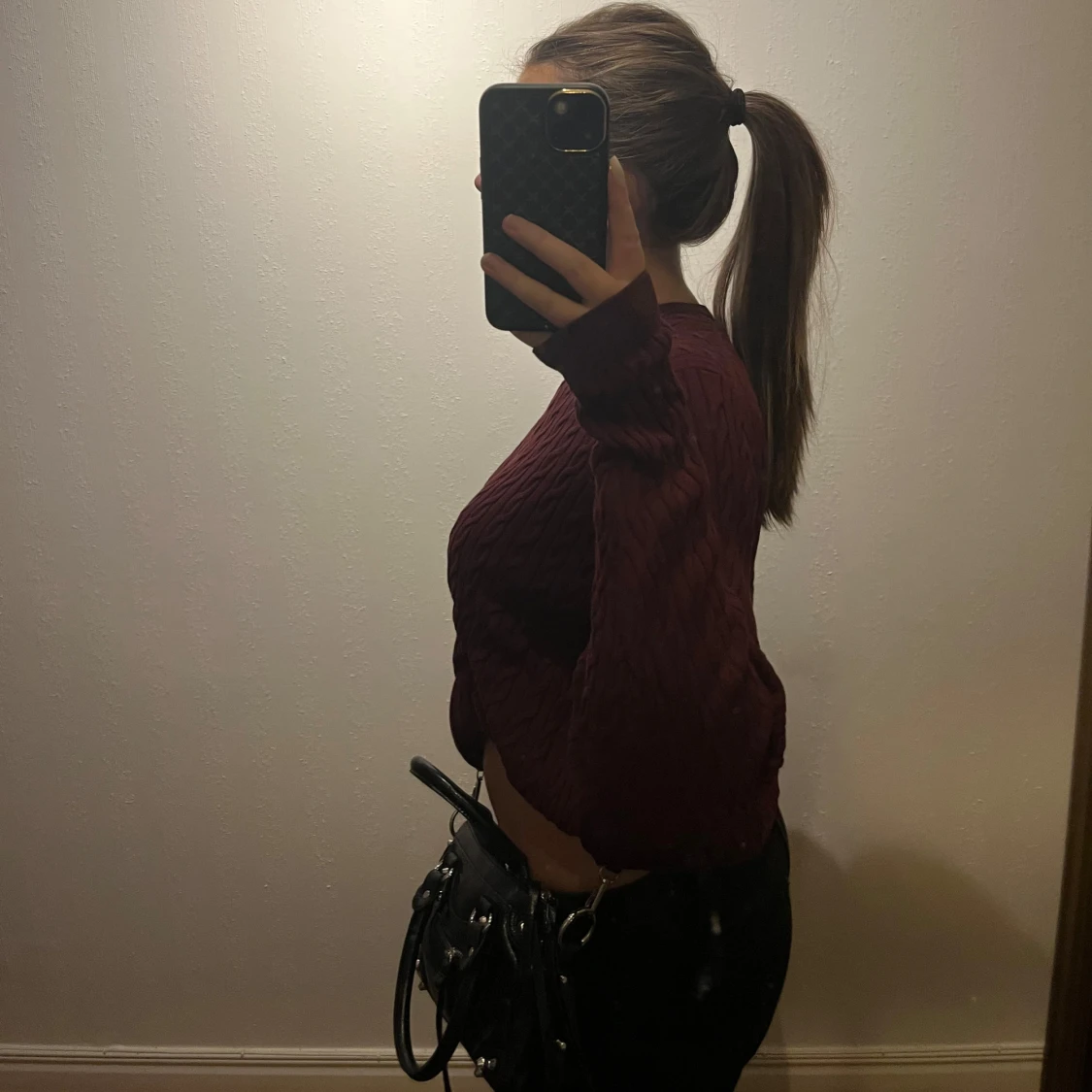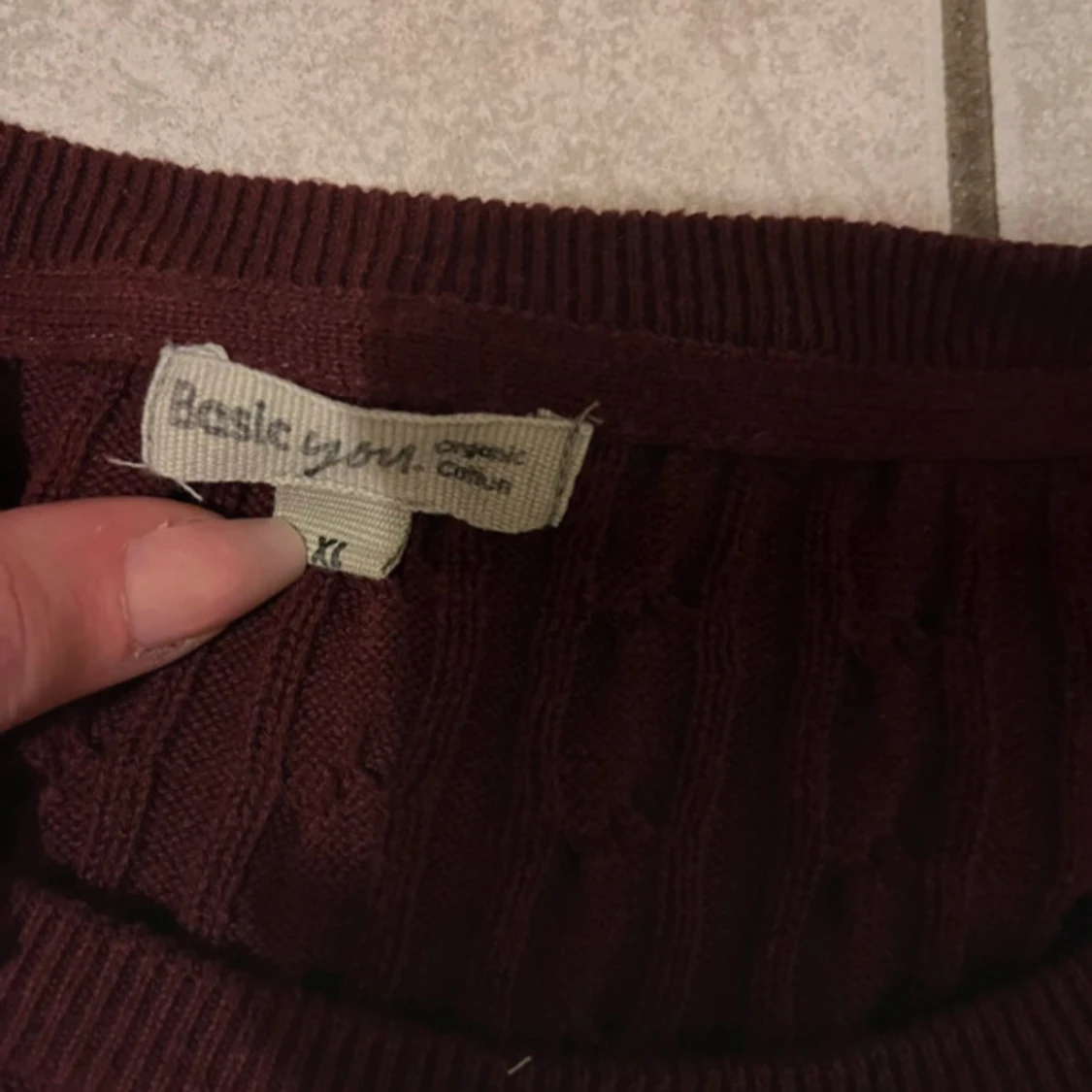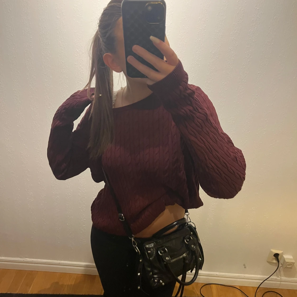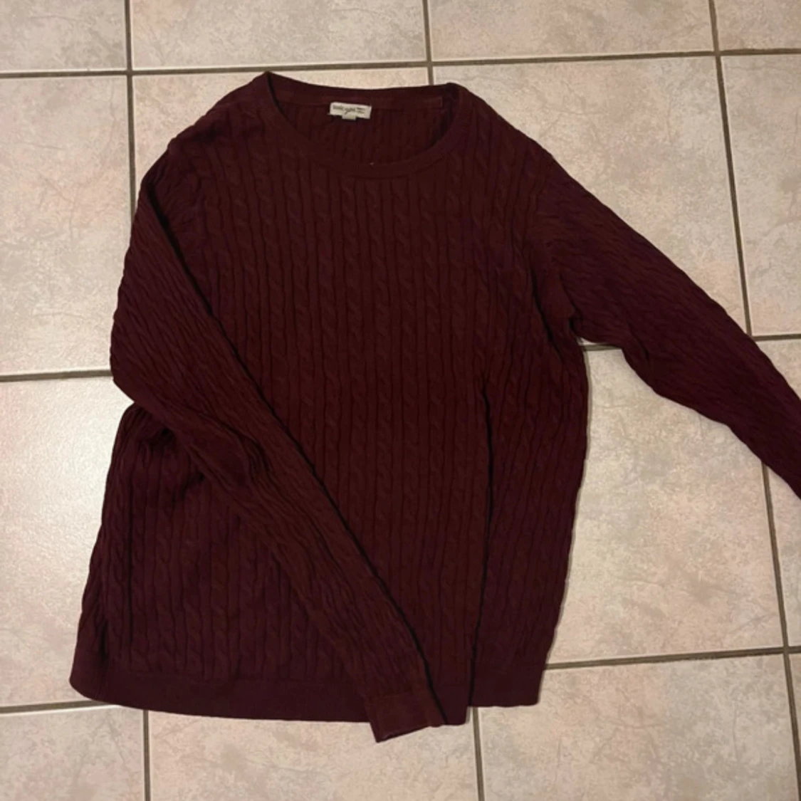 Säljer en mysig mörkröd stickad tröja från Basic by you. Tröjan har ett klassiskt flätmönster och rund halsringning. Perfekt för kyliga dagar. Passar bra till både jeans och kjol. Skriv vid frågor💗