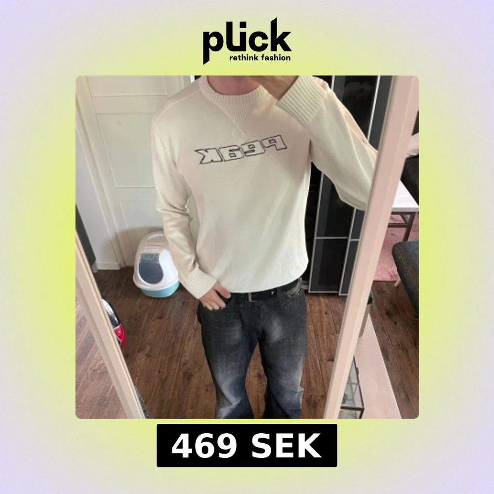 Vit stickad vintage tröja från Peak Performance med broderad logga i blått på bröstet. Tröjan har rund halsringning, ribbade muddar och lång ärm. Tröjan är i väldigt bra skick och passar storlek M. Skriv om du har några frågor 🙏😊