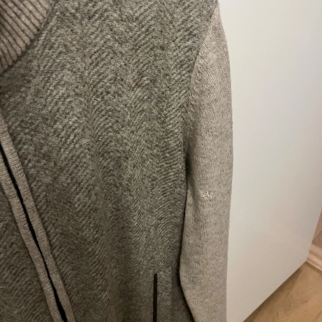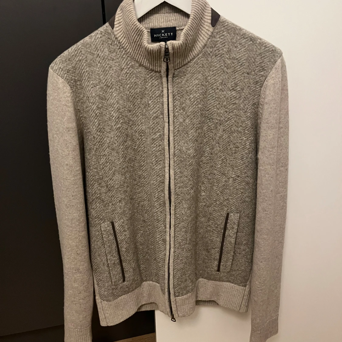 Riktigt snygg zip upp tröja från hackett london i 100% ull. Ett litet hål på armen som är åtgärdat (se bild 4), syns knappt. Så skick 9/10. Nypris runt 4000. Strl S men sitter mer som M. Passar dom som är mellan 175-185 cm beroende på hur man vill att den ska sitta.