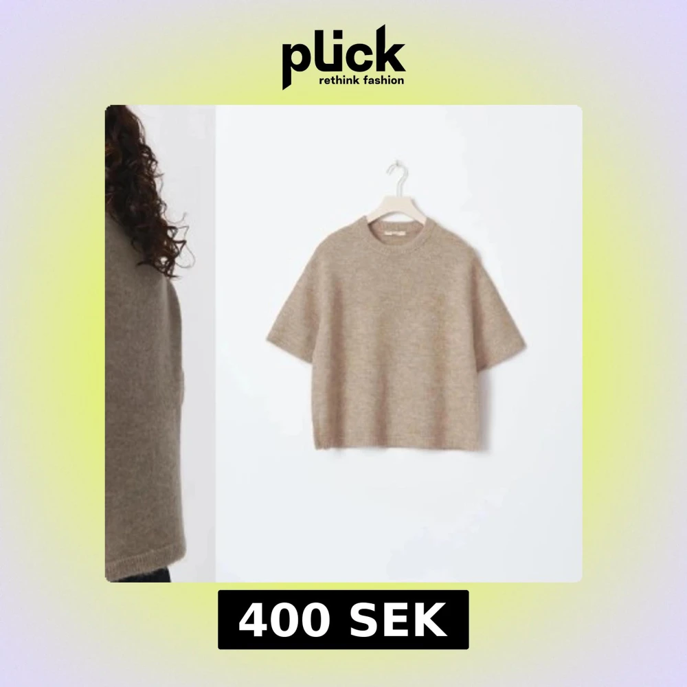 Beige kortärmad stickad tröja från Gina Tricot, I nyskick. I storlek M men passar mindre/större.