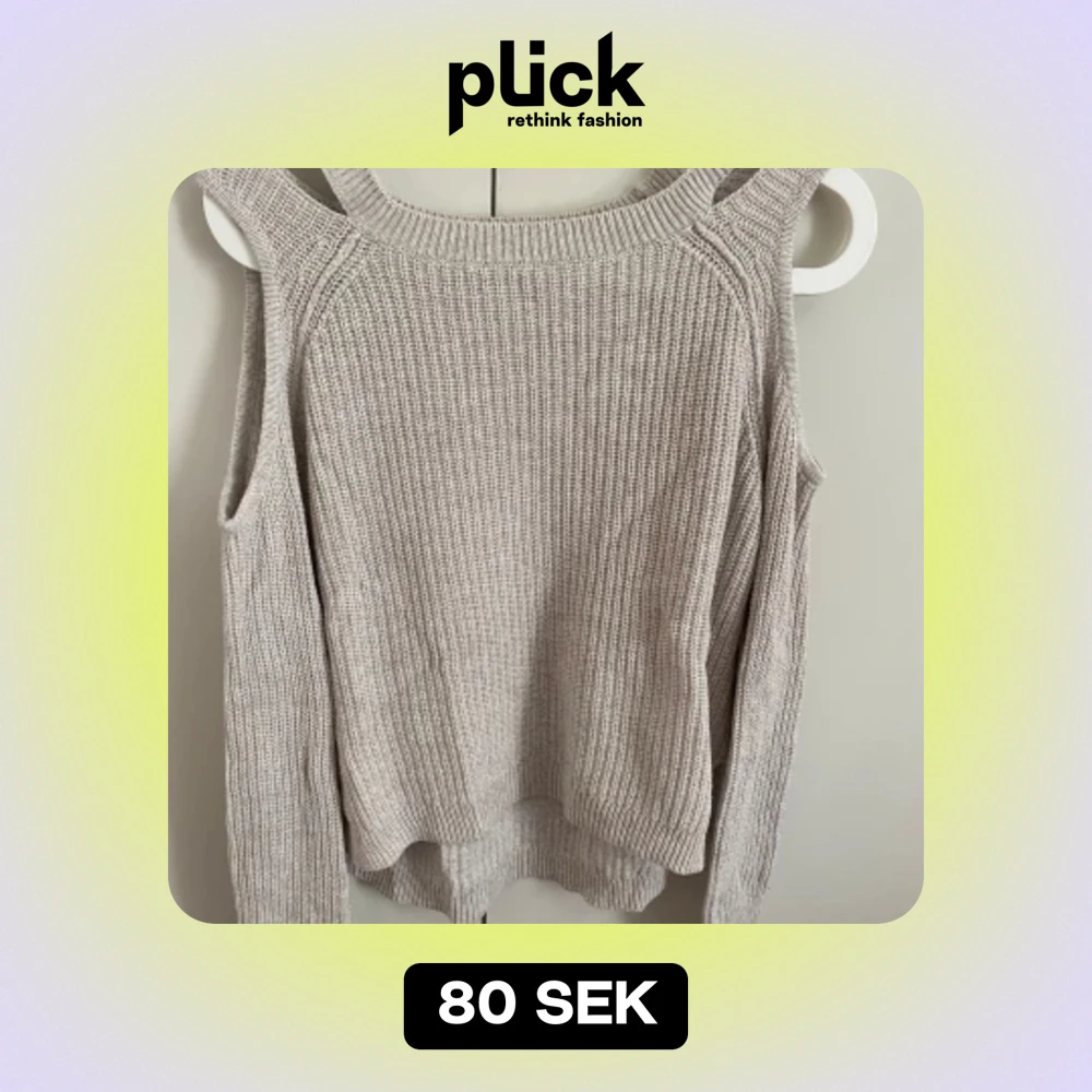 Säljer en superfin beige stickad tröja från Hollister. Den har en unik design med cut-out detaljer vid axlarna och är långärmad. Perfekt för höst och vinter, tröjan är i bra skick💗
