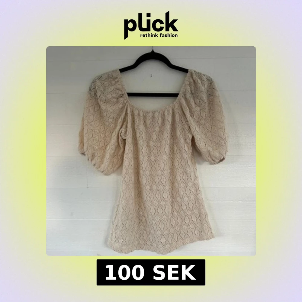 Supersöt beige stickad blus med puffiga korta ärmar och bred, rundad halsringning. Blusen har ett genomgående hålmönster i diamantform och är lätt transparent. Perfekt för dig som gillar romantisk och bohemisk stil.🤩💕
