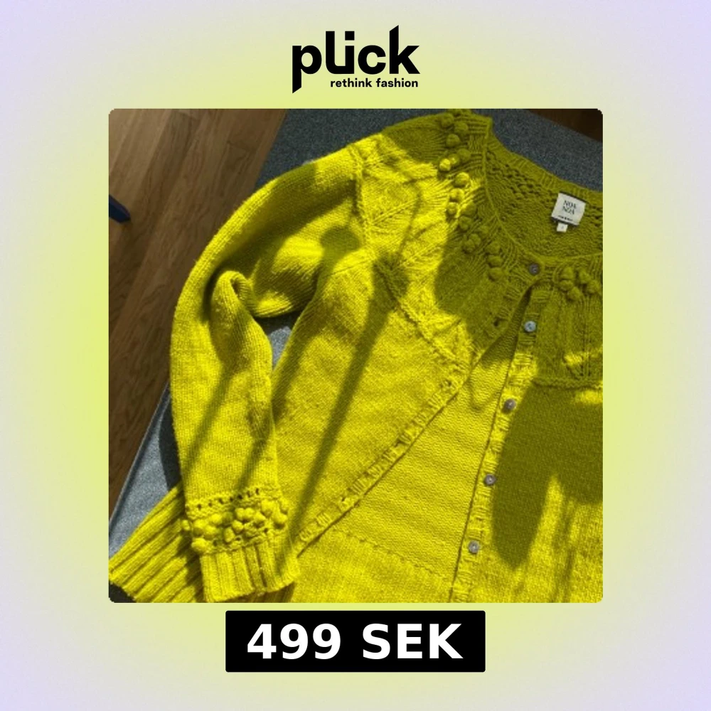 Superunik, gul stickad kofta från Noa Noa i storlek L. Koftan har vackra, dekorativa detaljer. Perfekt för dig som vill ha en färgklick i garderoben!