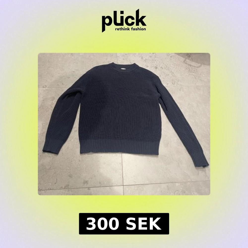Säljer en mörkblå stickad tröja från Studio Total i storlek M. Tröjan har rund hals, ribbade muddar och är långärmad. Perfekt för dig som gillar enkel och clean stil med lite struktur i materialet.