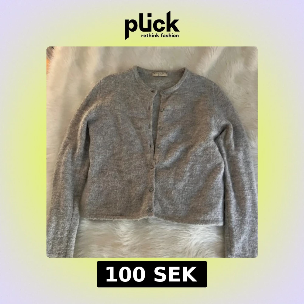 Jättefin stickad grå kofta från Gina Tricot i storlek xs. Lite nopprig men inget man tänker på.