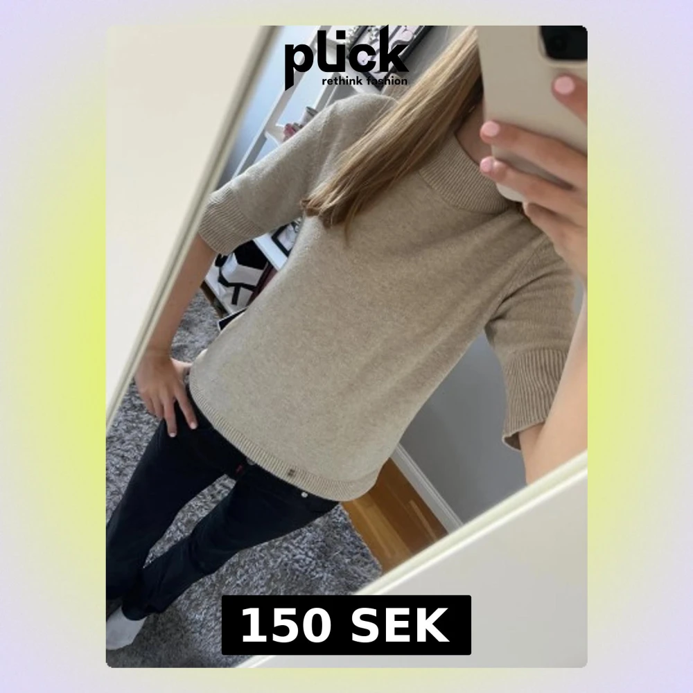 Säljer denna jättesnygga stickade kortärmade tröjan från vila i storlek xs, men passar upp mot s och m💗Tröjan är i bra skick. Fläcken på bilden är från min spegel, inte tröjan!