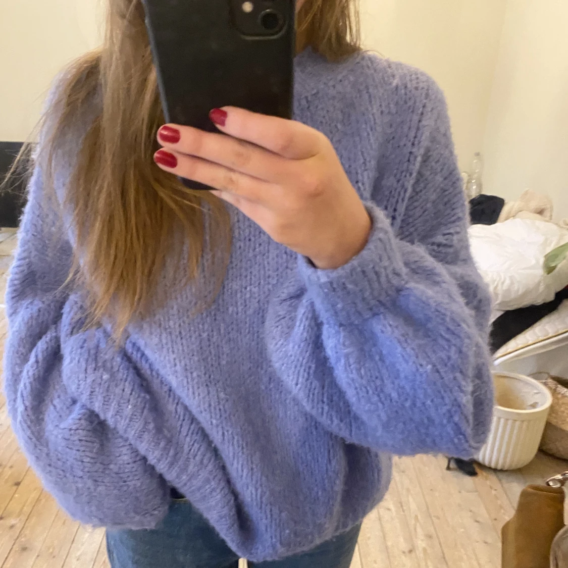 Så fin blå stickad tröja från italien, i bra begagnat skick💙