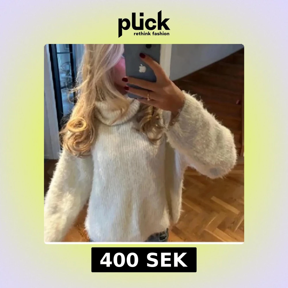 Mysig vit stickad polotröja med fluffig textur och avslappnad passform. Tröjan har långa ärmar och en bred polokrage som ger extra värme. Perfekt för kalla dagar och enkel att matcha med jeans eller kjol.
