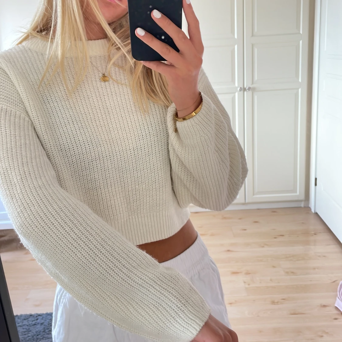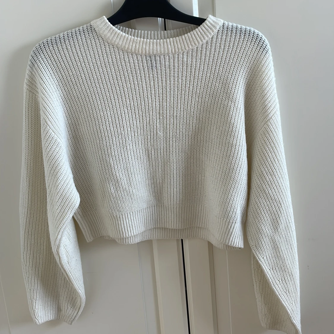 En lite kortare vit stickad tröja