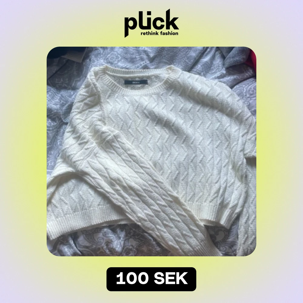 Vit jättefin och mysig stickad tröja ifrån bikbok🩷i strl s och är inte använd särskilt mycket, i fint skick!