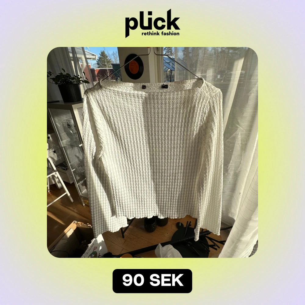 Säljer en superfin tunn tröja med ett vågigt mönster och vida ärmar. Passar perfekt till både vardag och lite finare tillfällen 🤍