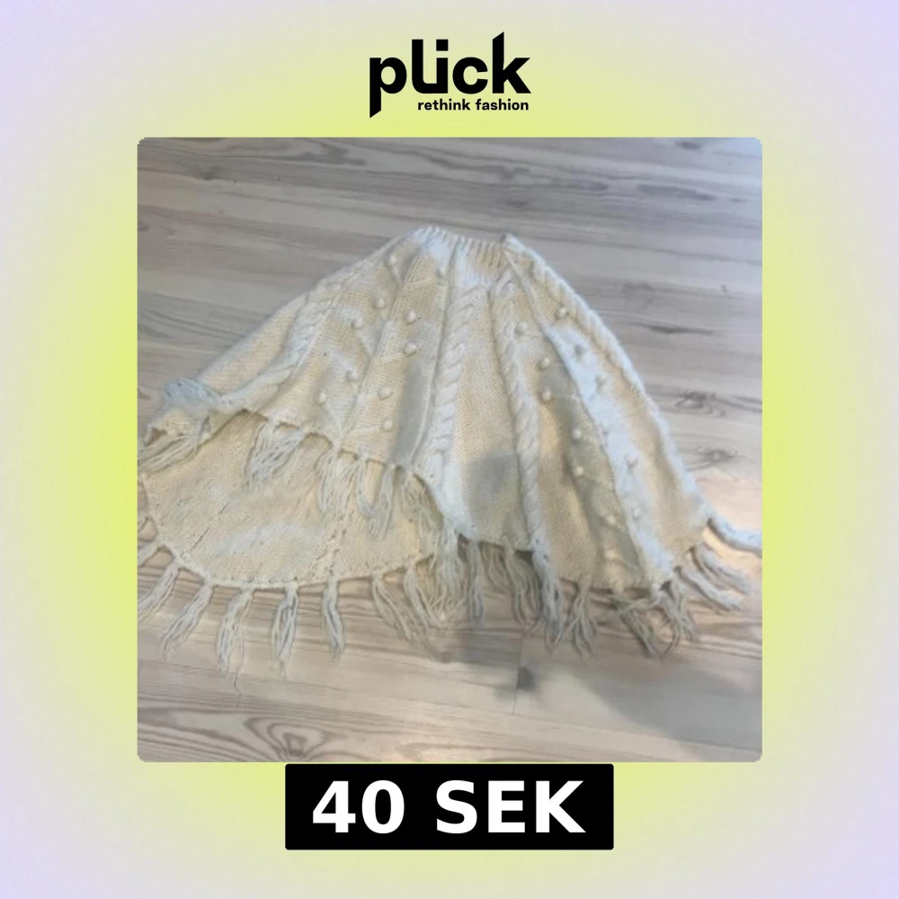Vit poncho från Kappahl. Har ett fint mönster med knoppar på. Har av någon anledning fått nåt rosa på sig, på andra bilden. Vet inte vad det är eller om det går bort.