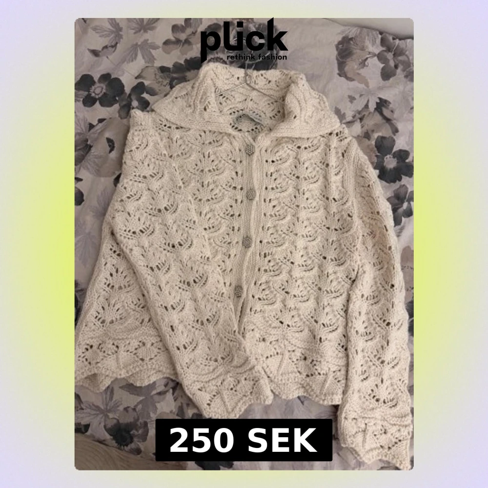 Vit stickad kofta med dekorativa knappar och ett detaljerat hålmönster från ZARA🤍I storlek M men passar även S!
