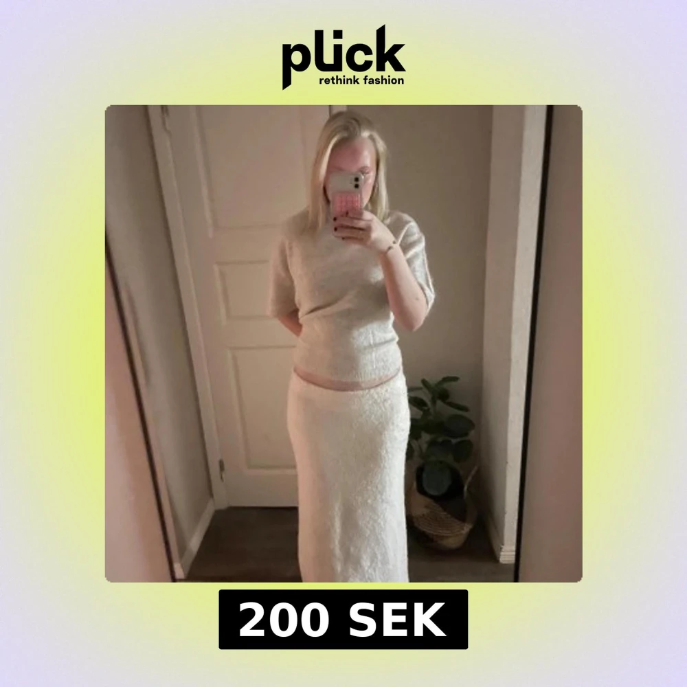Supermysig vit långkjol från Kappahl i stickat material. Kjolen har en rak passform och resår i midjan för extra komfort. Perfekt att styla med en matchande stickad tröja för en clean och trendig look.