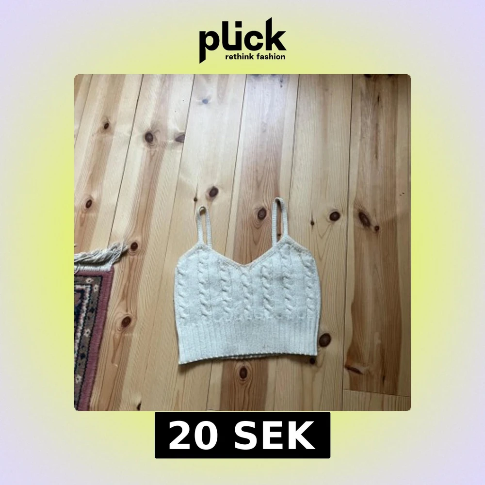 Säljer en söt vit stickad linnetopp från SHEIN med smala axelband och kabelstickat mönster. Toppen är croppad och har en ribbad nederkant. Perfekt att styla till jeans eller kjol!