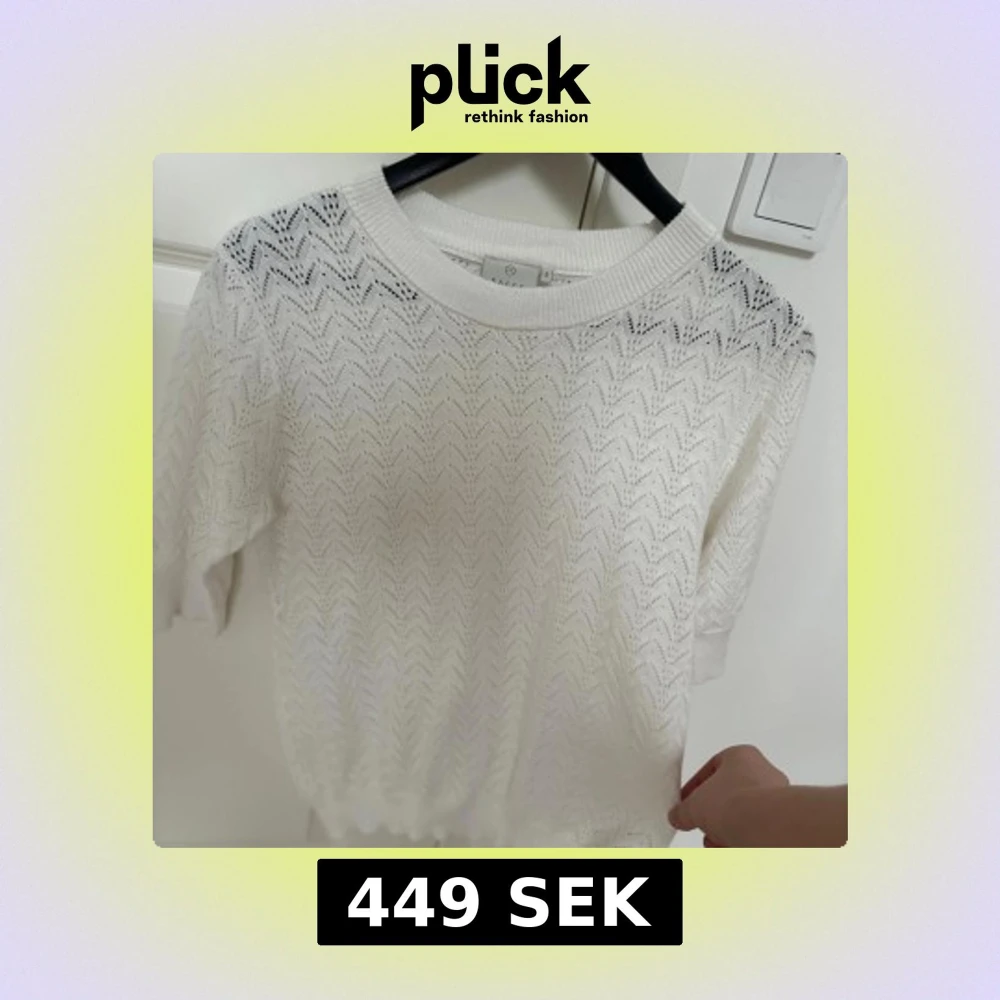 Superfin vit stickad topp från Kaffe med korta ärmar och snyggt hålmönster i zickzack. Rund halsringning, ger en fräsch look och en clean stil. Pris kan diskuteras!!