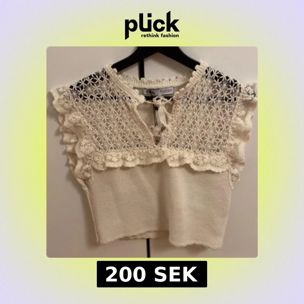 Säljer en söt vit stickad topp från Zara med spetsdetaljer. Helt oanvänd med lappen kvar, nypris 359kr. Skriv vid frågor eller för fler bilder🥰