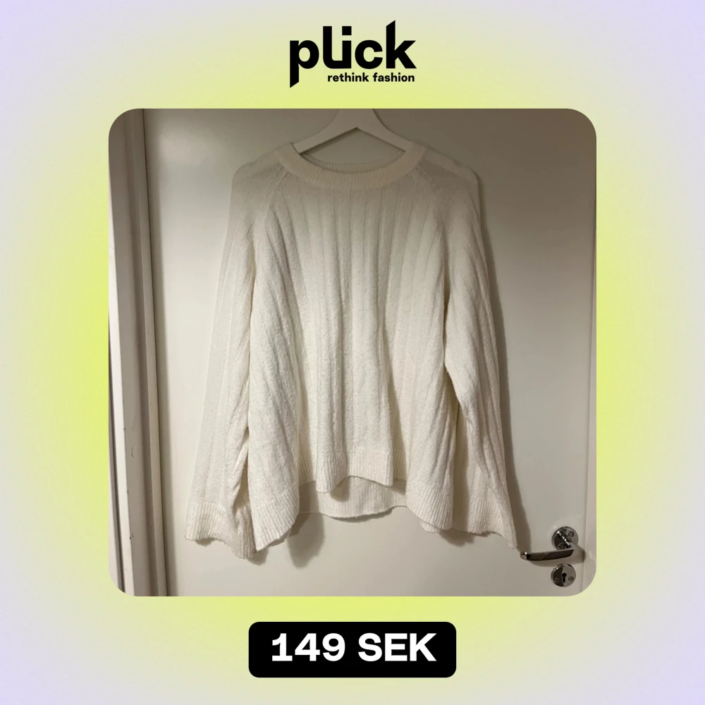 Säljer en mysig vit stickad tröja från 157. Tröjan har en ribbad struktur och långa ärmar, perfekt för kyliga dagar. Den är i storlek M och passar bra till både vardag och avslappnade tillfällen.