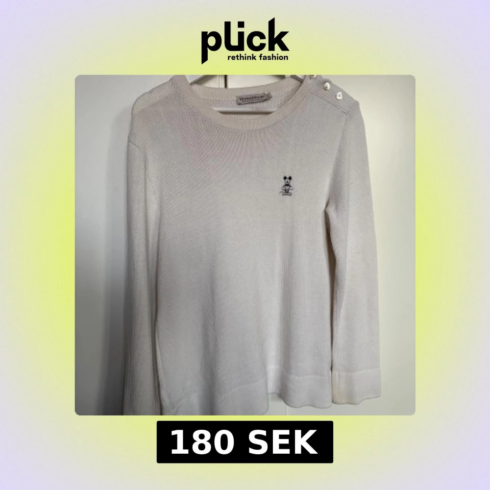 Säljer en stilren vit stickad tröja med en liten broderad detalj på bröstet. Tröjan har långa ärmar och knappar på axeln för en extra touch. Perfekt för en elegant och avslappnad look.