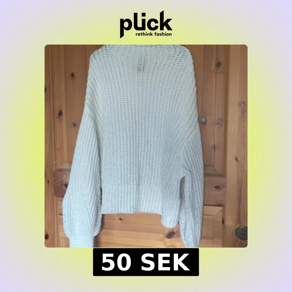 Mysig vit stickad tröja med långärmad design. Perfekt för kyligare dagar med sin ribbade struktur och bekväma passform.