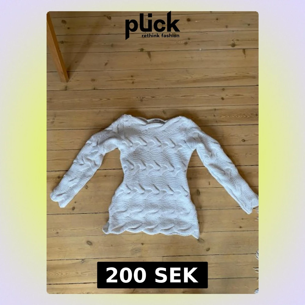 Säljer en vit stickad tröja från Esprit i storlek L, dock skulle jag uppskatta den mer som en M. Tröjan har ett chunky flätmönster över hela och är långärmad med boatneck.