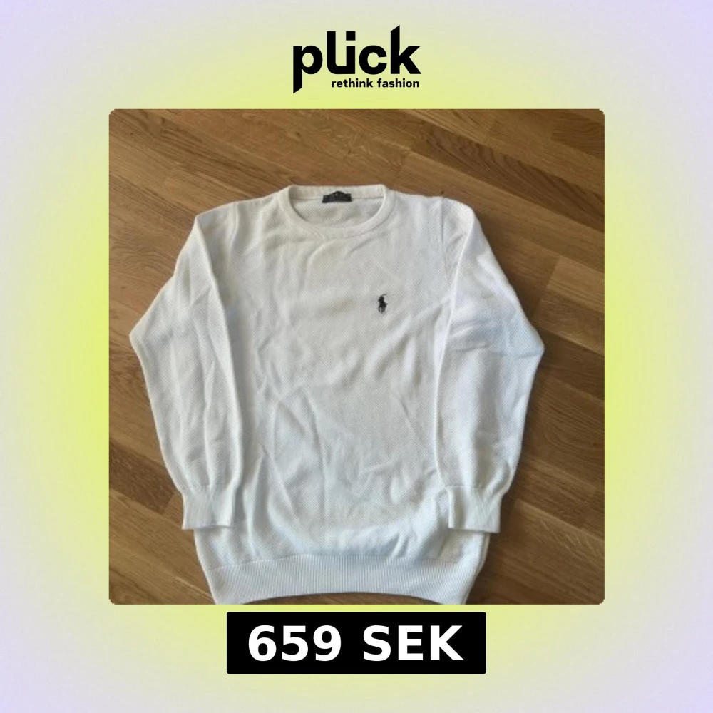 Snygg vit stickad tröja från Ralph Lauren med klassisk rund hals och broderad logga på bröstet. Tröjan har långärmad passform och ribbade muddar vid ärmslut och nederkant. Perfekt för dig som gillar stilrena och tidlösa plagg.