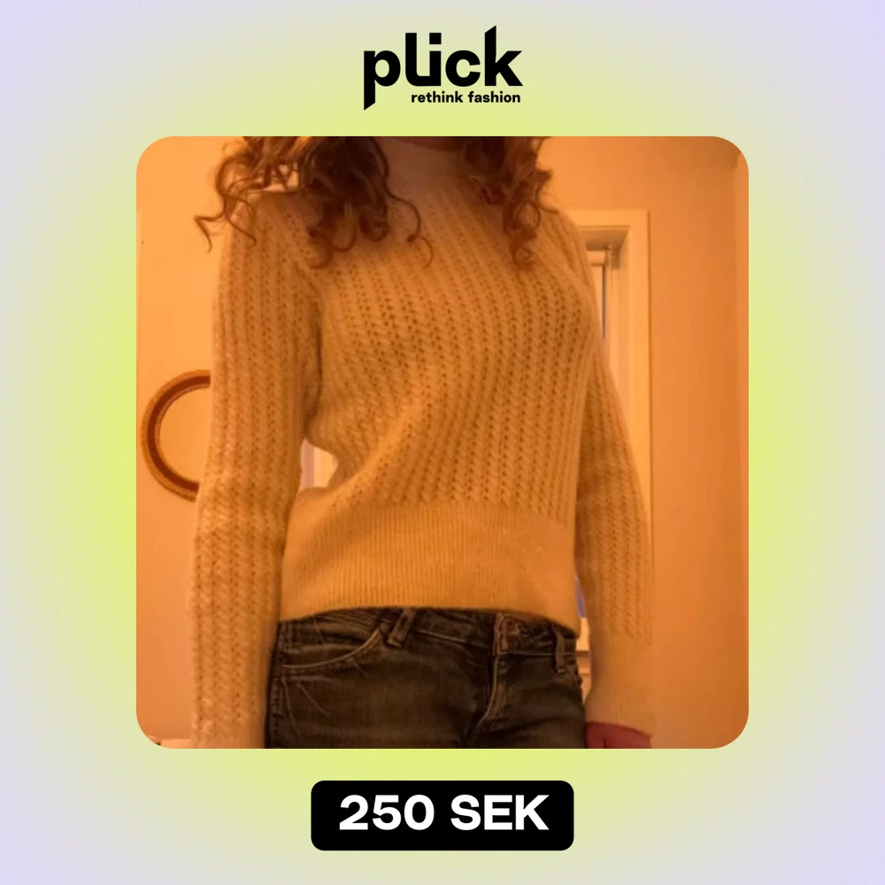 Väldigt mysig stickad vit tröja med så fin passform. Kommer tyvärr aldrig till användning, har använts typ en gång och i väldigt fint skick. Så skönt material och jättefint mönster.