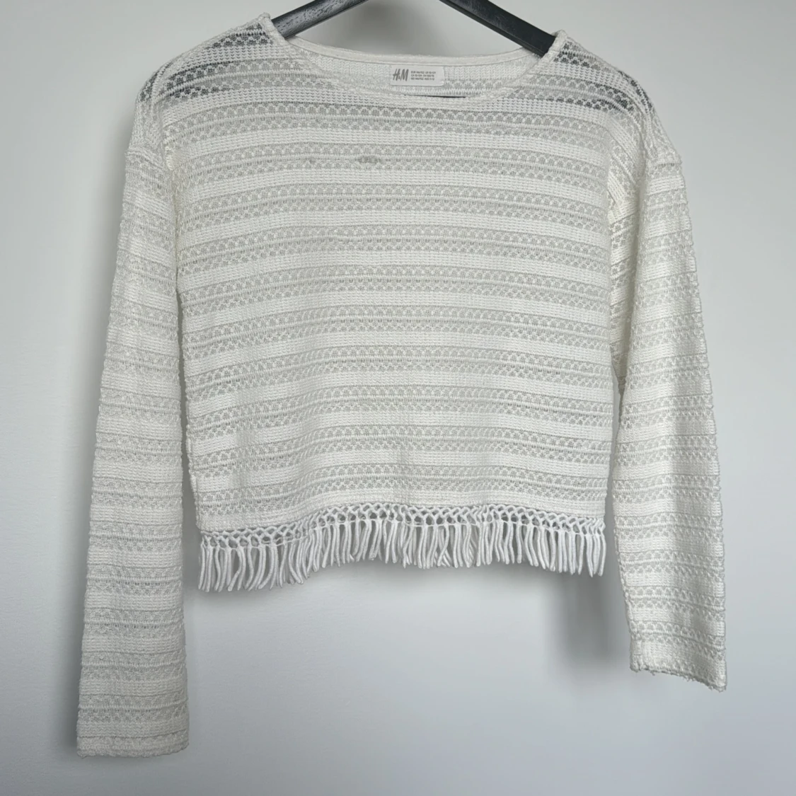 Gullig stickad ihålig tröja, men små hängande trådar från H&M. Passar perfekt till sommaren 🌸☀️ Den är lite sliten vid vänster sida, men inget man tänker på💕 Pris kan diskuteras