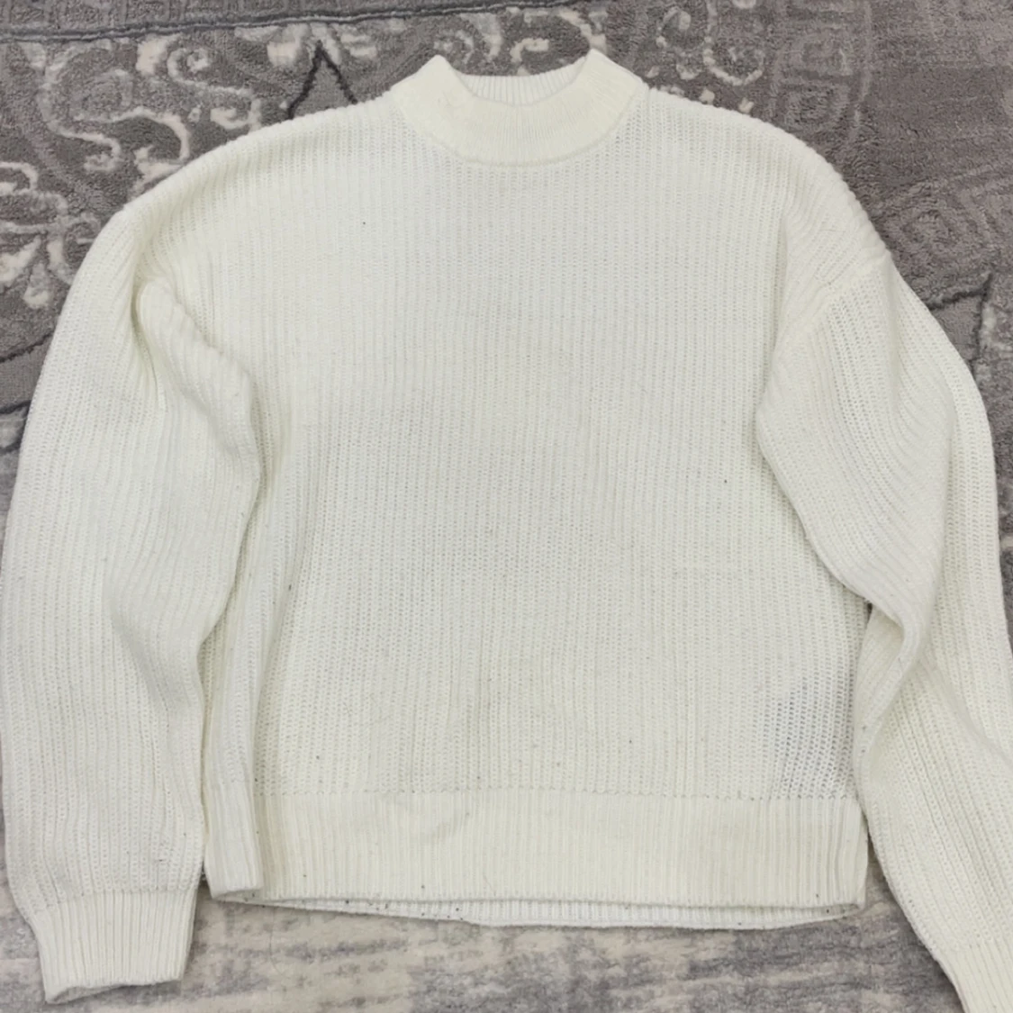 Säljer min vit stickad tröja från new yorker har haft på mig den jätte sällan och köpte för ungefär 200kr