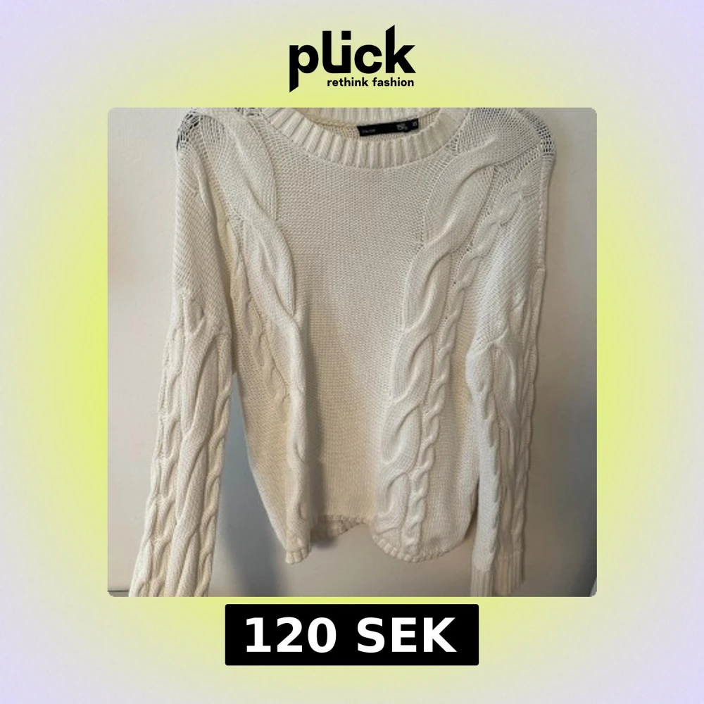 Säljer en vit stickad tröja från lager 157 med grovt flätmönster på både fram- och baksida samt ärmar. Tröjan har rund halsringning och långa ärmar. Perfekt för kyligare dagar.