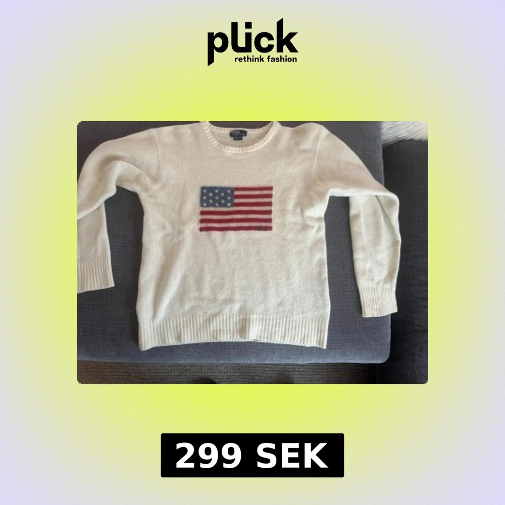 Vit stickad tröja från Polo Ralph Lauren med amerikansk flagga broderad på bröstet och diskret Polo-text. Rund hals, ribbade muddar och långärmad. Perfekt för dig som gillar klassisk stil med en twist.