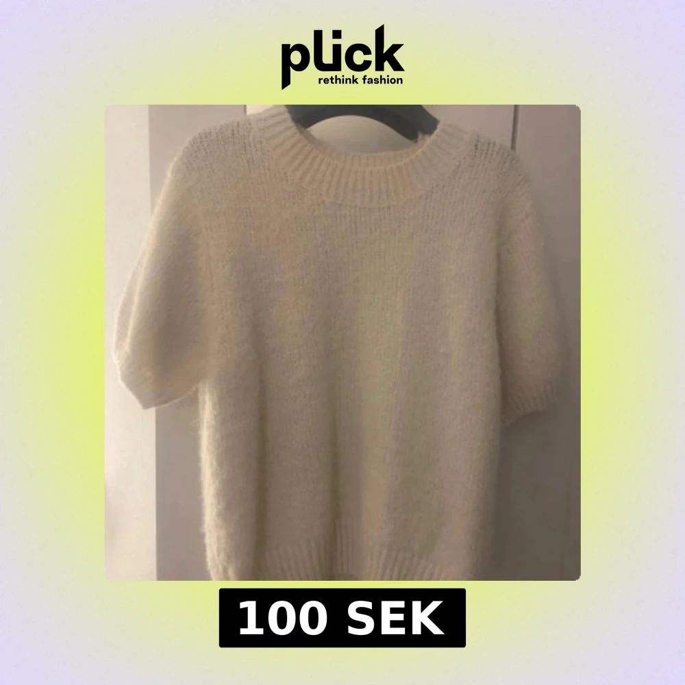 Mysig vit stickad tröja från Gina Tricot med korta ärmar och bred ribbad kant vid halsen. Perfekt för lager-på-lager och passar till både jeans och kjol. Enkel och stilren design som funkar året runt.