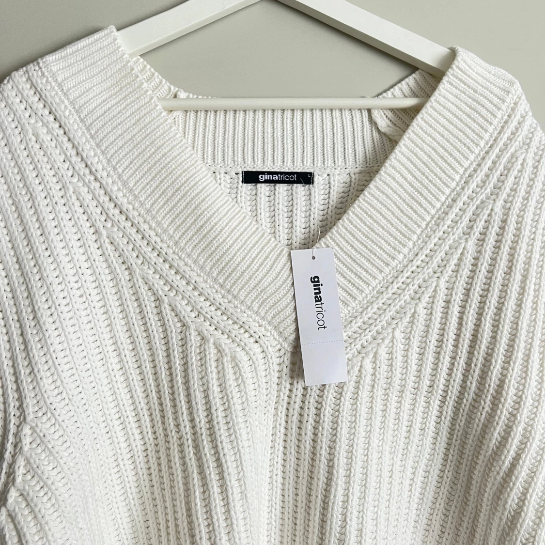 Säljer en superfin vit stickad väst från Gina Tricot. Den har en snygg v-ringad design och är perfekt för lager-på-lager under höst och vinter. Västen är i nyskick och passar perfekt för en stilren look.