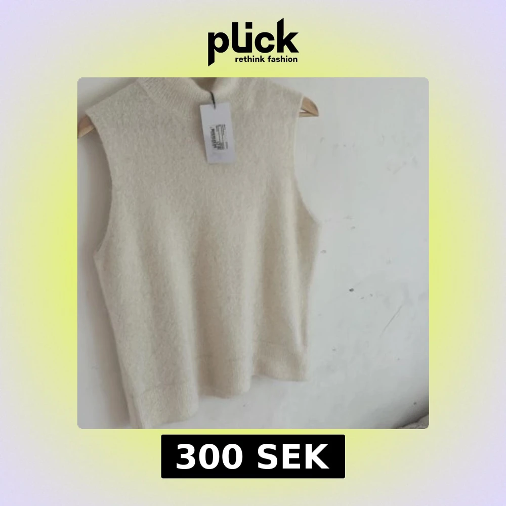 Supermjuk och stilren vit stickad väst från Stockh LM Studio. Modellen är ärmlös med hög krage och ribbade kanter. Perfekt att bära över en skjorta eller t-shirt för en clean look. Materialet känns fluffigt och lyxigt. Original pris 599 med prislapp säljer för den är för stor