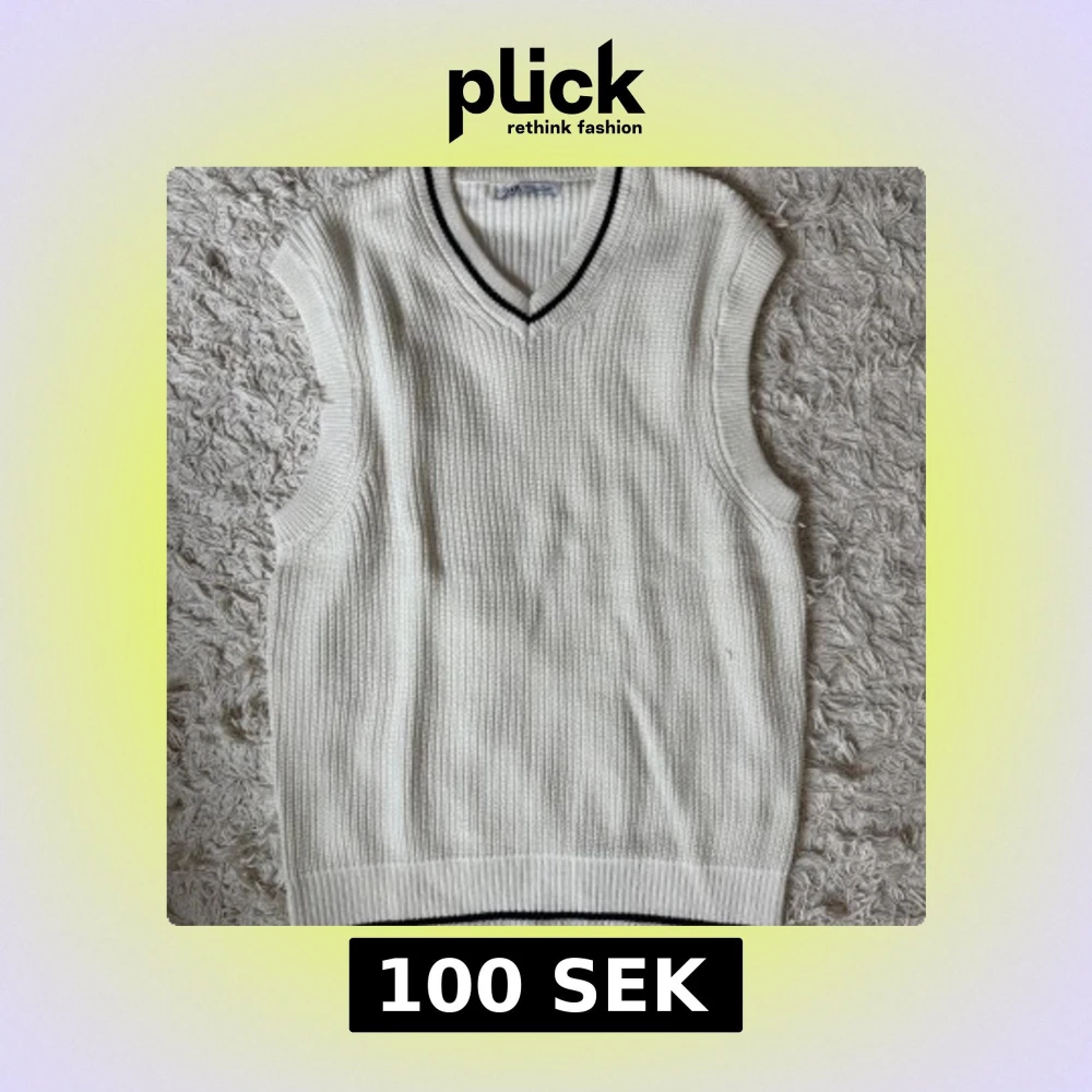 Säljer en vit stickad väst från Zara i storlek M. Västen har v-ringad hals med svarta ränder och ribbade kanter. Den är gjord i ett grovt stickat material.