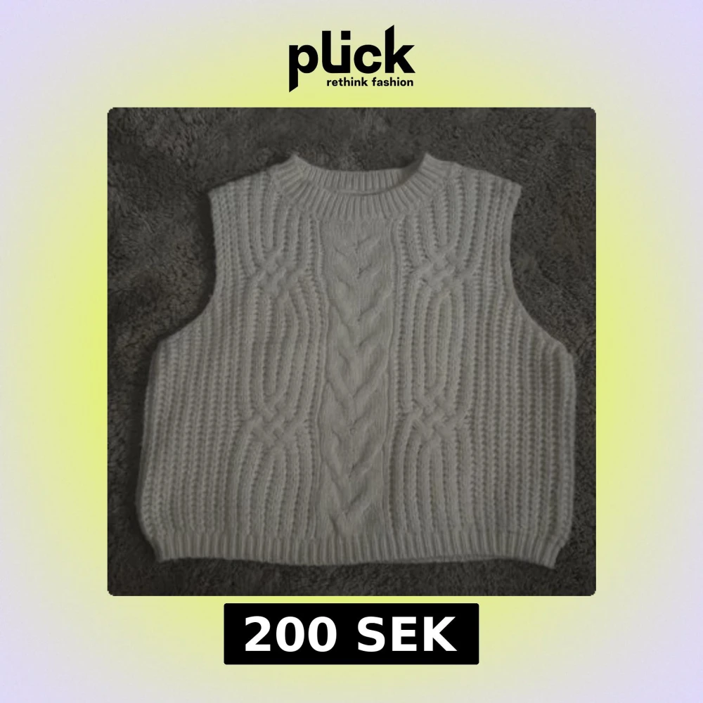 Vit stickad väst från Pink Rose med grovt kabelstickat mönster och ribbad kant vid hals och nederdel. Perfekt att slänga över en skjorta eller t-shirt för en trendig lager-på-lager-look. Aldrig använd 💕