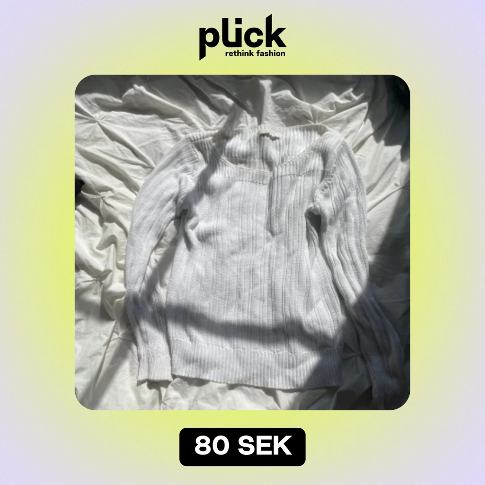Stickad vit tröja med snygg urringning storlek M men passar även S