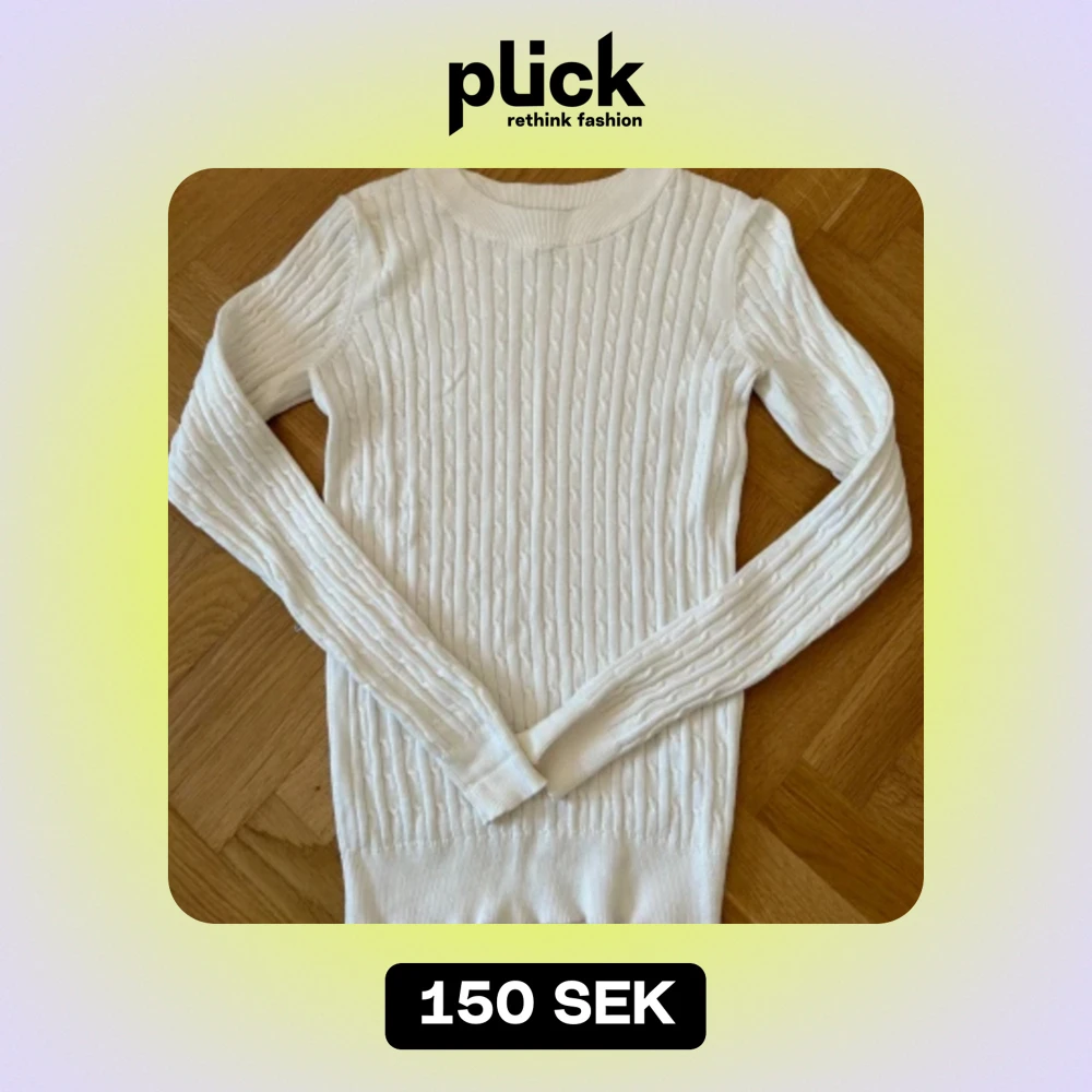 Det är en vit stickad tröja ursprungligen från Gina tricot. Endast använd ett fåtal gånger men tyvärr passar inte längre. En av mina favorit tröjor. Pris går att diskutera 💕