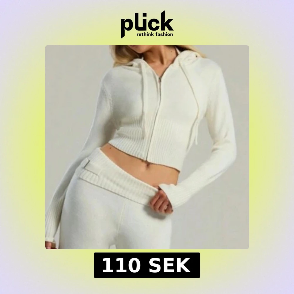 Snyggt vitt stickat set med mjukisbyxor med låg midja och ribbade detaljer. Med en hoodie till med ribbade detaljer på också! Perfekta för en avslappnad stil med en skön passform.