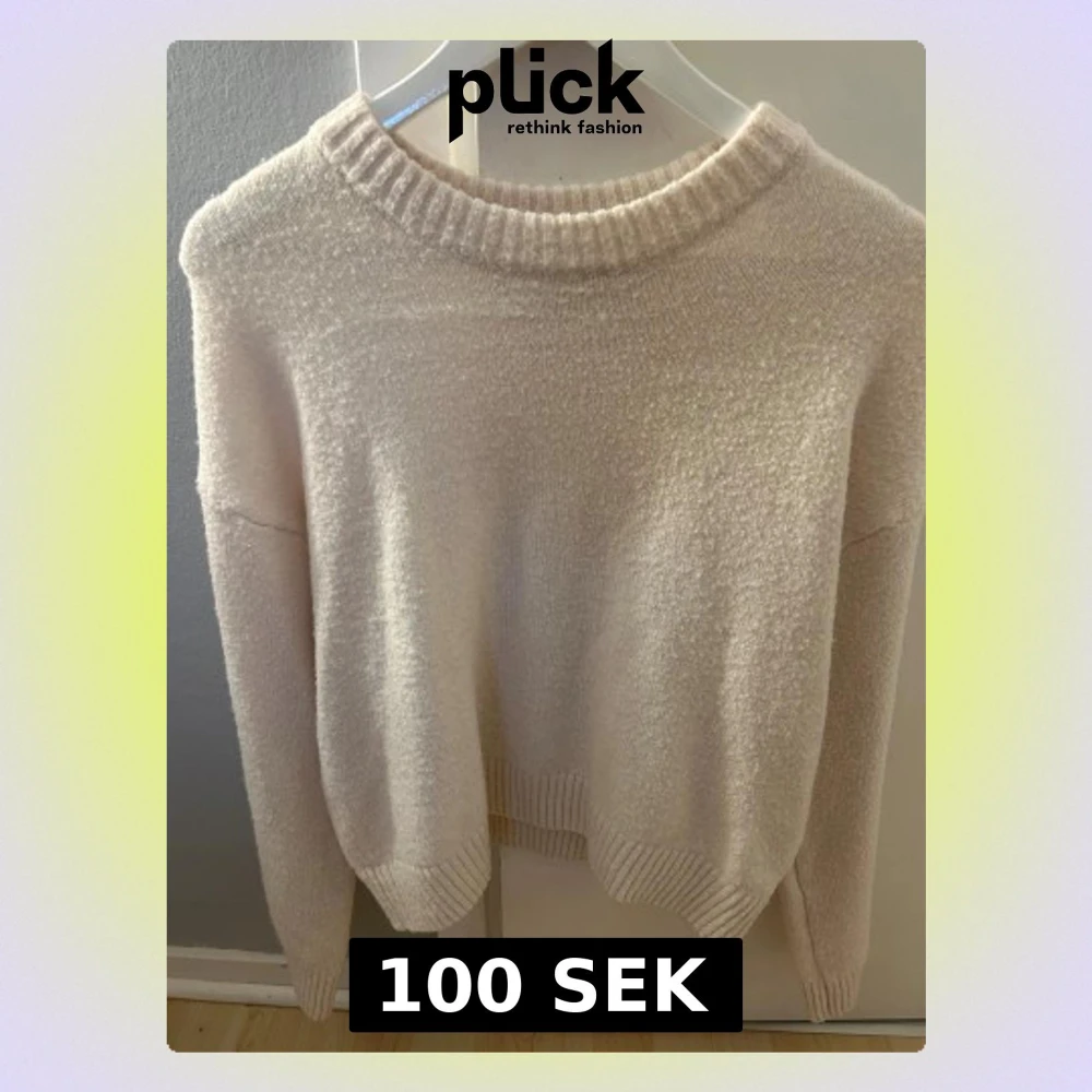 Mysig vit stickad tröja med rund halsringning och ribbade muddar vid ärmslut och nederkant. Perfekt för lager-på-lager och chill dagar. Enkel och stilren design som passar till det mesta.