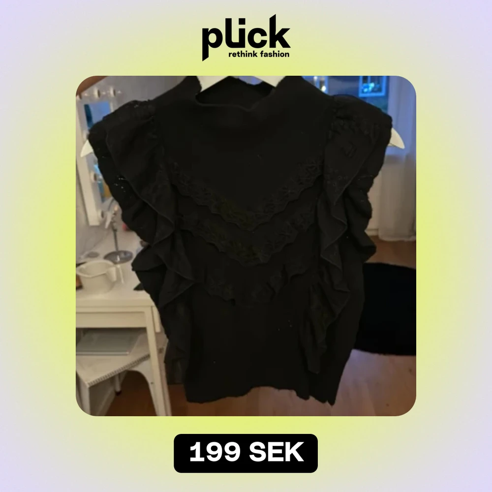 Så söt stickad topp med volanger! Sparsamt använd så i bra skick❤️ strl m men jag skulle säga att den sitter som en s