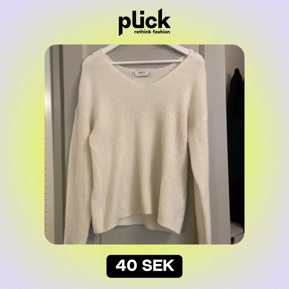 Jättefint vit stickad v ringad tröja från ONLY. Fint skick!