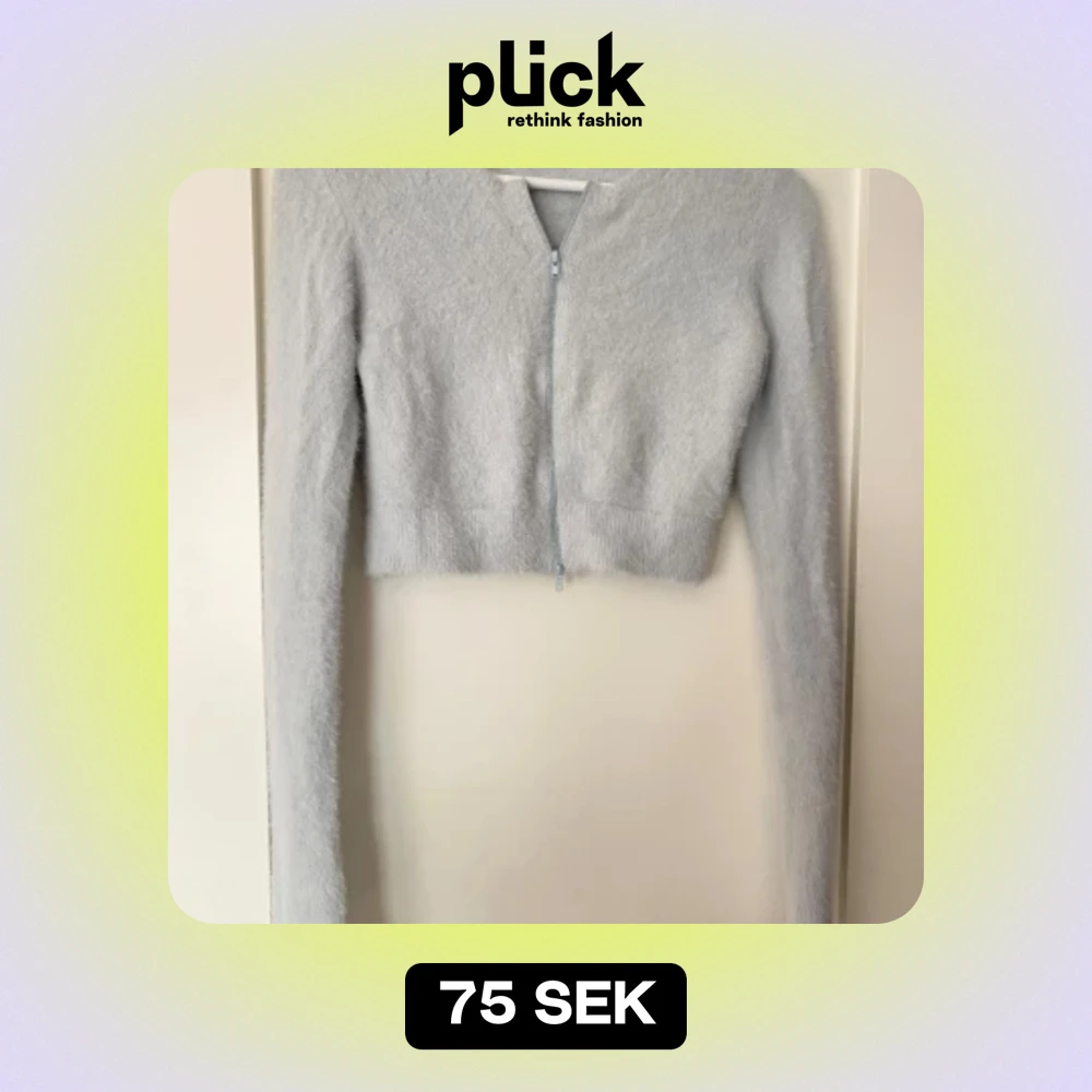 En mjuk och bekväm ljusgrå kofta från Weekday med dragkedja framtill. Koftan är croppad och har långa ärmar. går att stänga blixtlåsen så man vill ha dem. ett hål uppe vid weekday lappen, där en söm har gått upp, går nog att laga lätt för den sykunniga 🙈