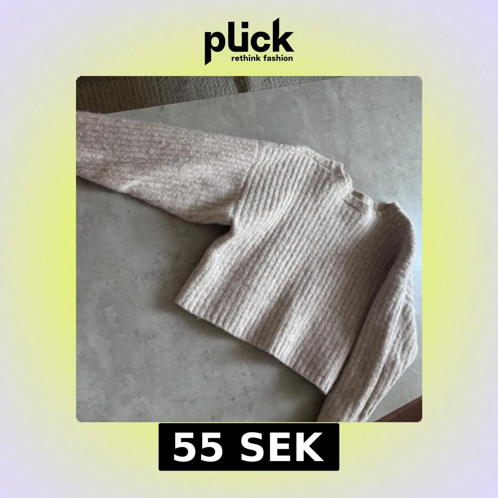 Säljer en beige croppad stickad tröja från Weekday. Tröjan har ribbat mönster, lång ärm och en lite boxig passform. Fint i skicket och superskön!!