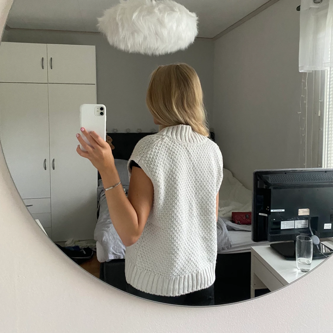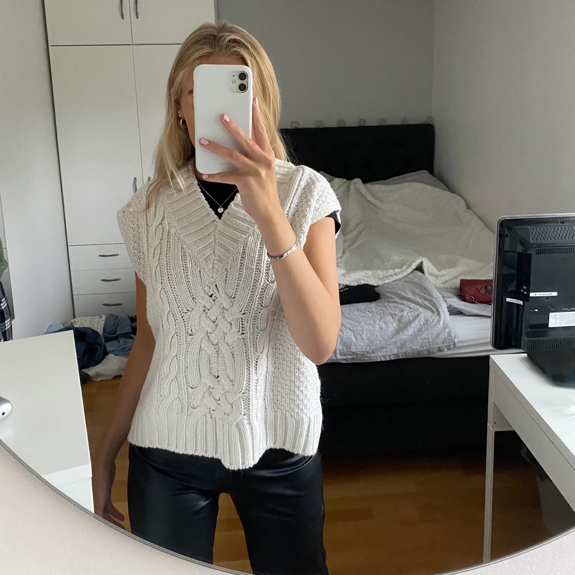 Säljer denna supertrendiga stickade väst från H&M. De är xs men sitter oversized så skulle tro att den passar allt mellan xs-m 💕 knappt använd